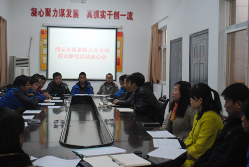 11月18日下午,道桥六分公司开展了党的群众路线教育实践活动——谈心会。分公司领导班子成员、机关各部门人员和各施工队的自聘人员参加了会议。会上,分公司领导与职工面对面真诚的交流和沟通,认真听取他们的心声,诚恳指出解决职工实际问题的思路和方法;同时让职工畅所欲言,发表自己对公司的发展、工作思路、工作方法等方面的建议,虚心听取职工对领导班子及成员的意见和建议,让职工真正感受到公司像个温暖的大家庭,每位职工都是家里的一份子,需要你、我、他的共同努力,共同为这个“家”服务,共同撑起一片天。