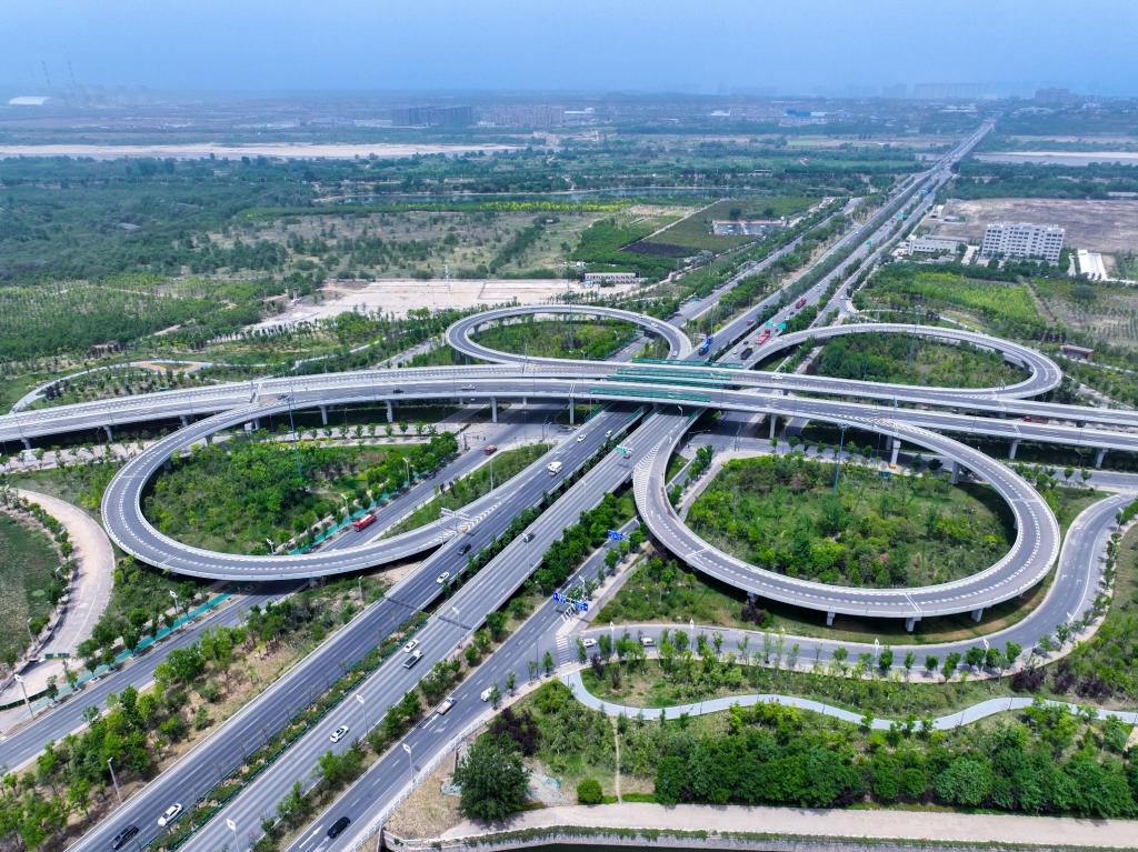 该项目为三层苜蓿叶全互通式立交,道路等级为城市快速路,道路规划红线宽度60m,设计车速80km/h,立交全长1673.738m,规划断面为高架桥+地面辅路形式,包括尚稷路主线桥、西铜路主线桥拓宽及四个苜蓿叶匝道。