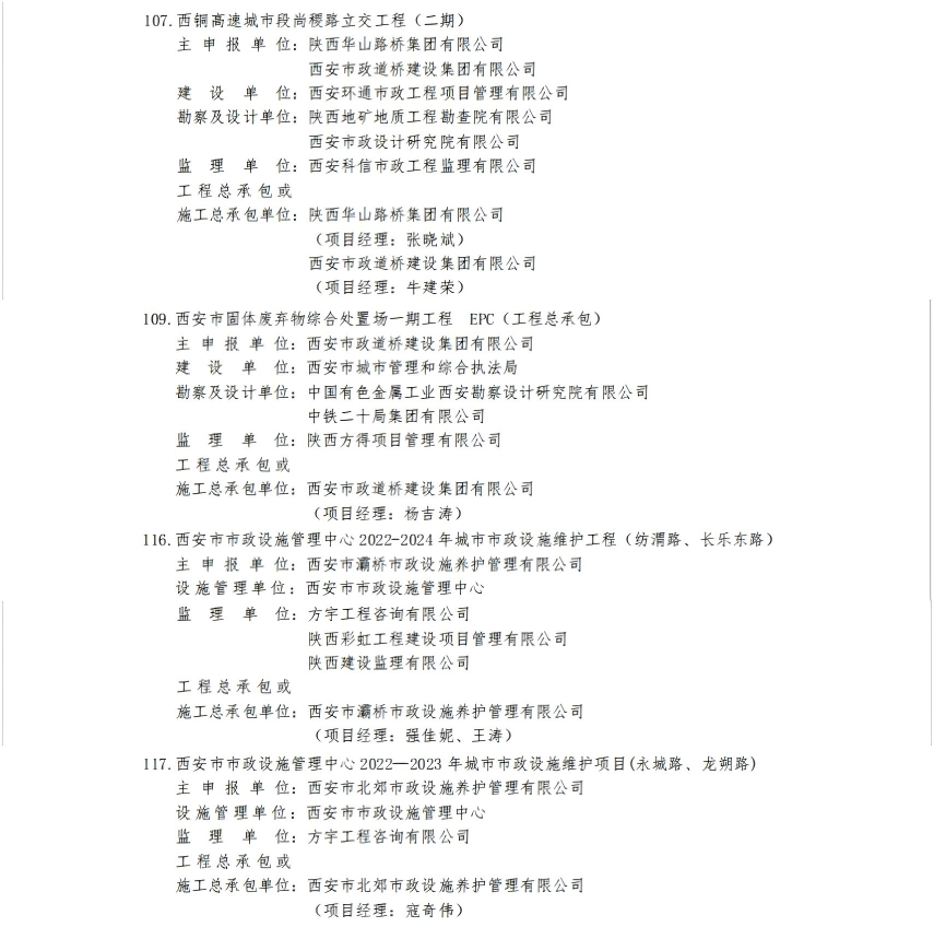 近日,由西安城投道桥集团承建的尚稷路立交工程(二期),西安市固体废弃物综合处置场一期工程EPC(工程总承包),西安市纺渭路、长乐东路以及西安市永城路、龙朔路4项工程荣获2025年度市政工程最高质量水平评价。