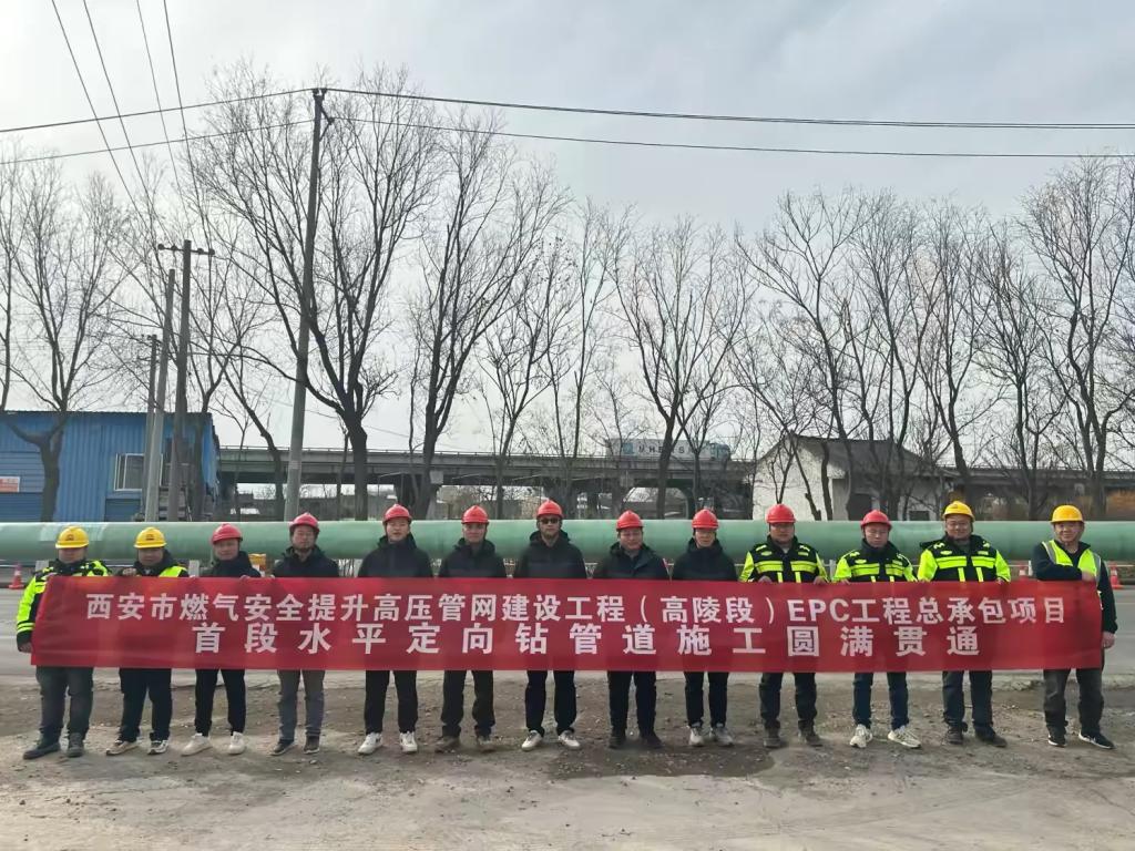 近日,由道桥集团一公司具体实施的西安市燃气安全提升高压管网建设工程(高陵段)EPC项目B标段KB2+410-KB3+116段706米水平定向钻管道回拖成功。经过16小时连续奋战,该标段首段高压燃气定向钻管道顺利贯通,为后续工程推进奠定坚实基础,助力西安燃气安全保障体系升级。