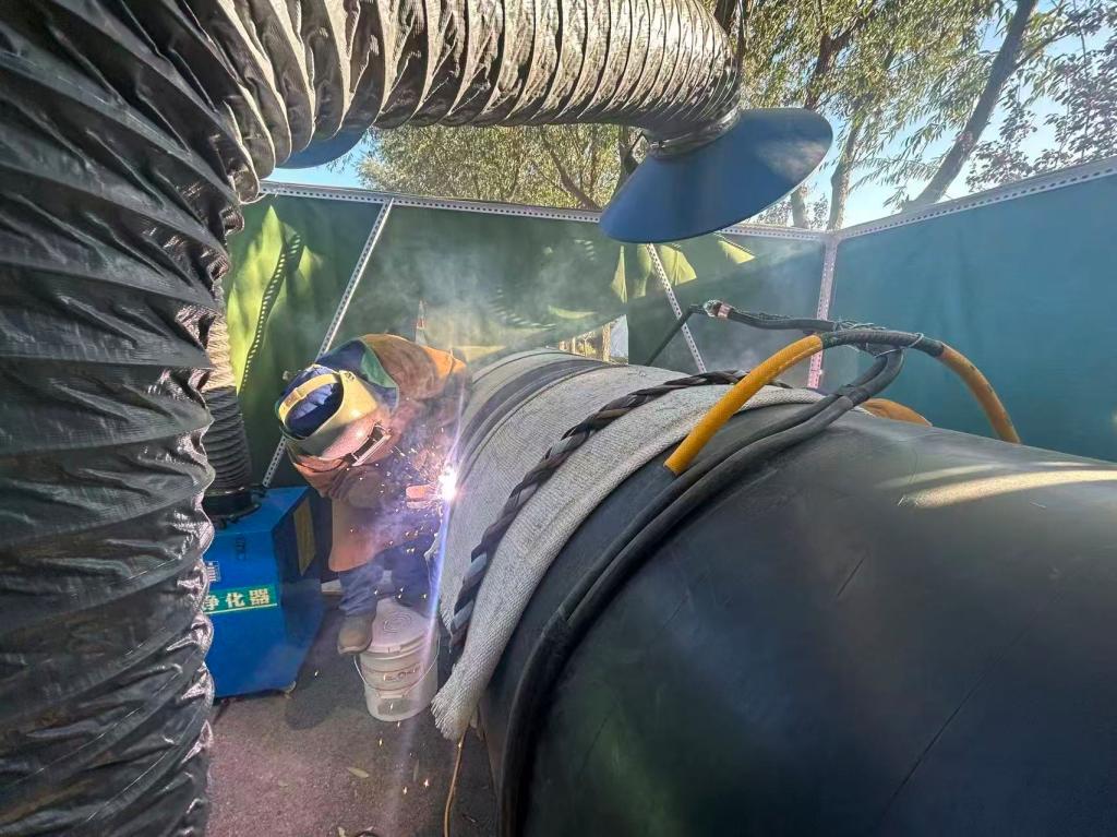 在钻扩孔环节,采用高精度导向仪实时监测孔道轨迹,通过泥浆护壁稳固孔壁,累计完成5级扩孔作业,最终形成光滑完整的孔道。焊接环节组建攻坚班组,采用SMAW(手工电弧焊)+FCAW(药芯焊丝电弧焊)半自动焊接工艺,全程旁站监督,每道焊缝经超声波检测和射线检测双重探伤,检测一次合格,合格率100%。