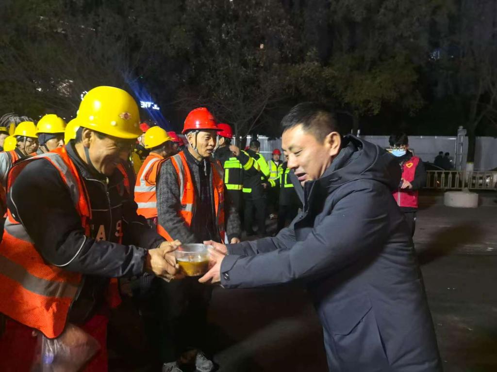 “师傅们,刚出锅的麻食,趁热吃,暖和暖和!”香气四溢的餐食驱散了工地上的寒意,面层摊铺工李师傅接过温暖的餐碗说:“热饭来得太及时了,身上和心里都暖乎乎的。”除了暖心餐食,加绒棉鞋、手套等防寒物资也为工友们筑起了一道“温暖防线”,传递着浓浓的关怀。