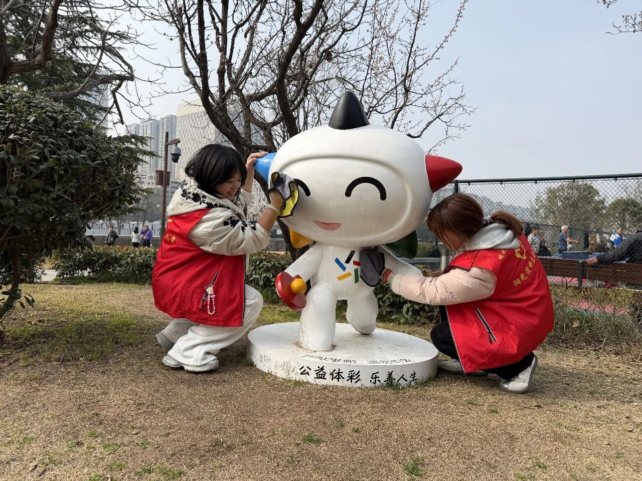 东郊公司“阳光道桥”志愿服务队走进长兴路家属院,升级苗圃、补种花木、更新标语,焕新老旧小区风貌;西郊公司志愿者走进环城公园(玉祥门段),清理杂物、擦拭设施,扮靓城市公共空间。
