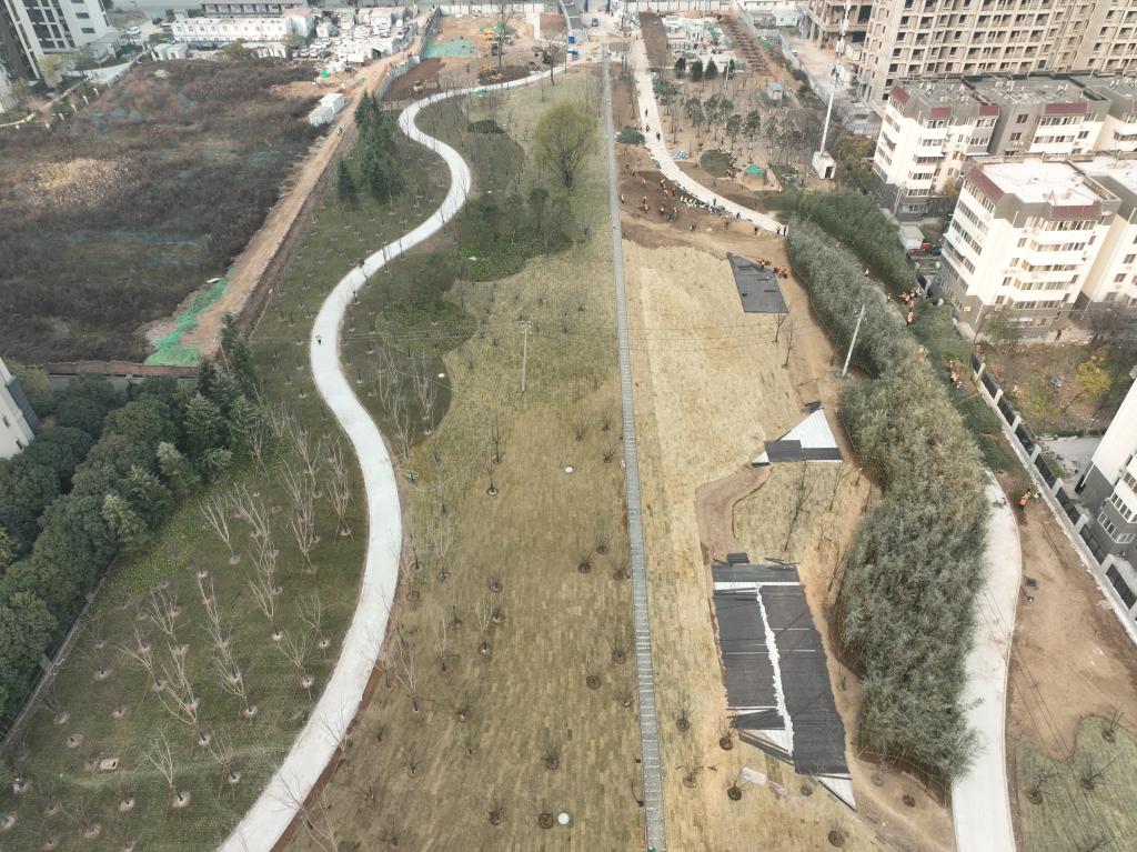 西安红旗铁路公园北起红旗东路、南至华清西路,是一座集居民休闲、户外健身、社区运动、日常娱乐、多元艺术、在地文化、城市记忆为一体的综合性服务型线性公园。道桥集团承建范围为永城路-太元路,全长约3.1km,占地面积约22万平方米,施工内容主要包括公园景观、配套建筑、市政道路及天桥配套设施等。在红旗铁路公园施工现场,机器轰鸣、繁忙有序。工人们正在进行天桥附属结构及铺装、垂直电梯等施工作业,截至目前,已完成总工程量的80%。