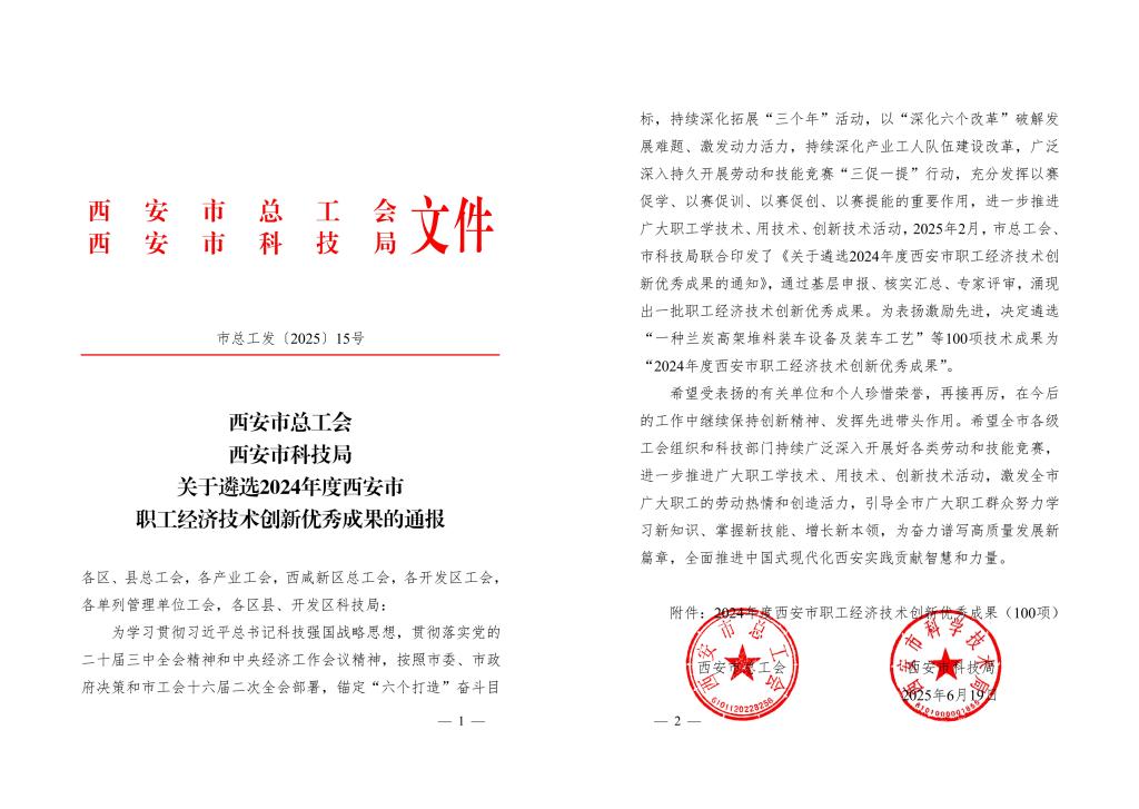 近日,西安道桥集团秦通公司“低碳环保型沥青混合料应用研究”技术成果,经西安市总工会、西安市科技局联合遴选,获评“2024 年度西安市职工经济技术创新优秀成果”,为推动交通基础设施绿色转型再添新动能。