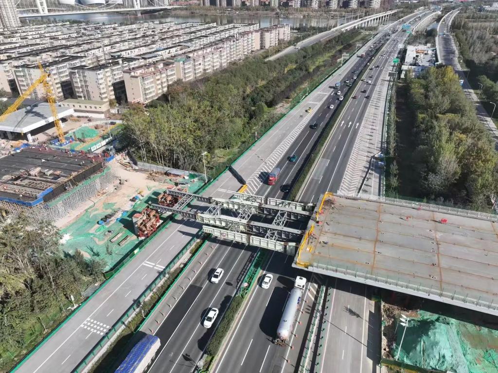 2025年集团具体实施的广运潭大道跨绕城高速项目为西北地区最长、最宽的跨绕城顶推工程,技术难度大,集团联合西安长大公路工程检测中心开展产学研攻关,通过数值建模、专项监测方案编制、全过程动态监测与智能调控,圆满攻克顶推施工荷载大、结构受力复杂等难题,保障工程安全高效推进。