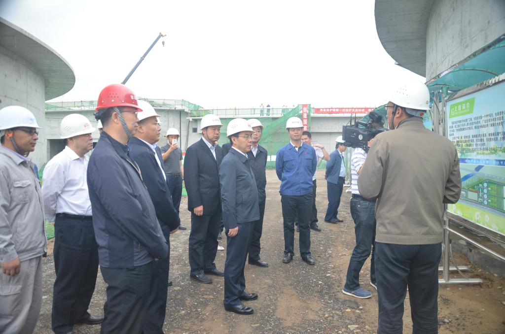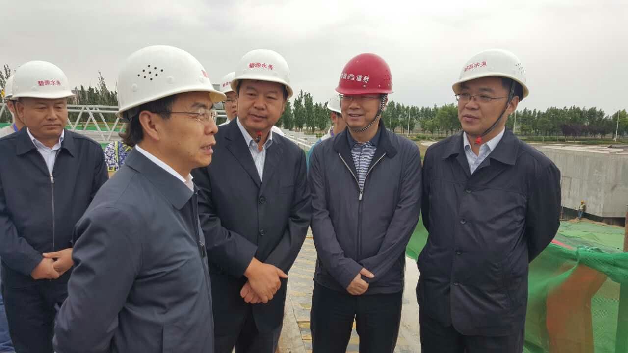 5月25日上午,西安市市长上官吉庆一行在道桥公司总经理薛建、分公司经理颜虎平及水务局、经开管委会相关领导等陪同下视察了公司在建项目经开草滩污水处理厂。