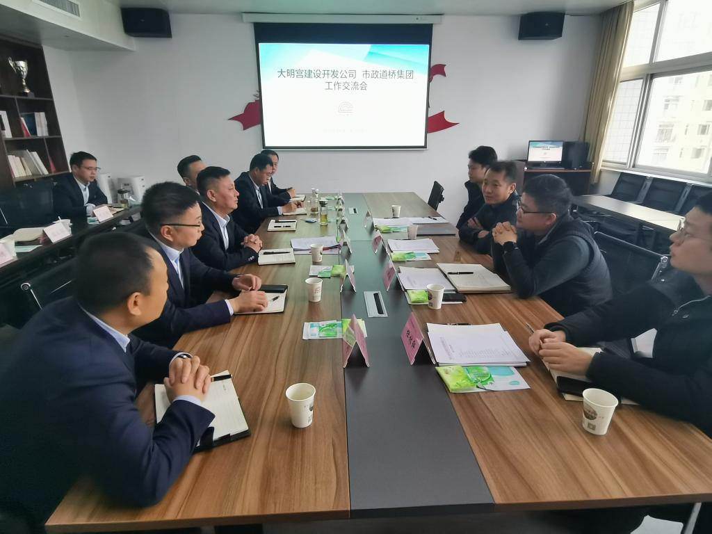 12月1日上午,西安曲江大明宫建设开发有限公司总经理焦波、副总经理史程鹏一行,来市政道桥集团进行工作交流。道桥集团总经理刘卫军,集团领导张武、杨浩宇、张满红等参加座谈。