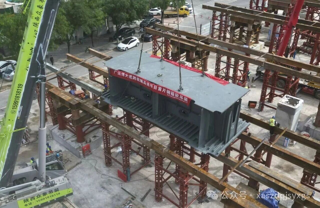 近日,由道桥集团二公司具体实施的广运潭大道跨绕城高速项目钢箱梁安装工作已全面启动。