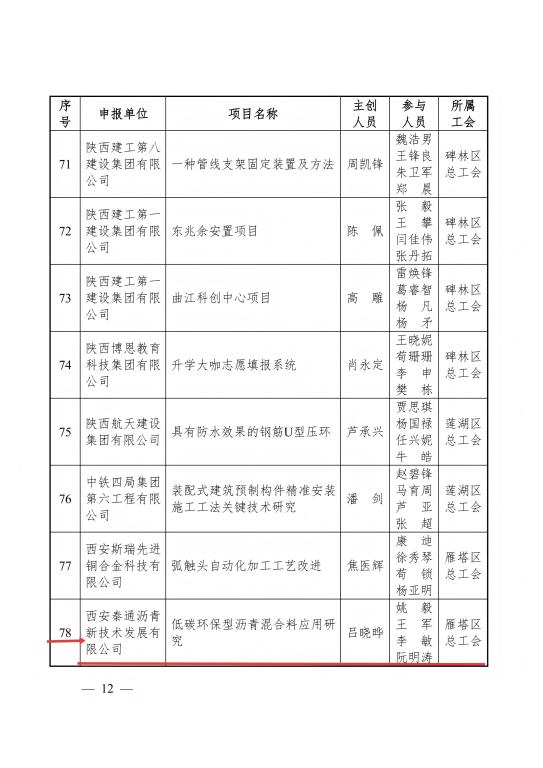 近日,西安道桥集团秦通公司“低碳环保型沥青混合料应用研究”技术成果,经西安市总工会、西安市科技局联合遴选,获评“2024 年度西安市职工经济技术创新优秀成果”,为推动交通基础设施绿色转型再添新动能。