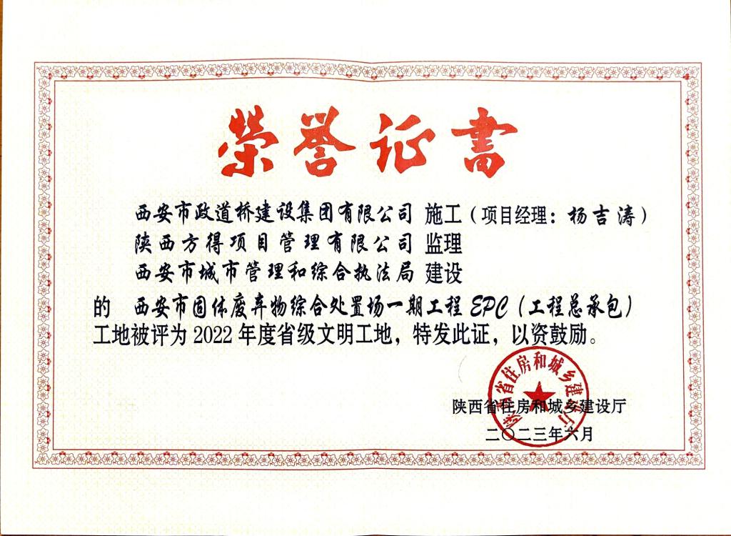 11月1日,由西安道桥集团承建的西安市固体废弃物综合处置场一期工程EPC(工程总承包)通过竣工验收。