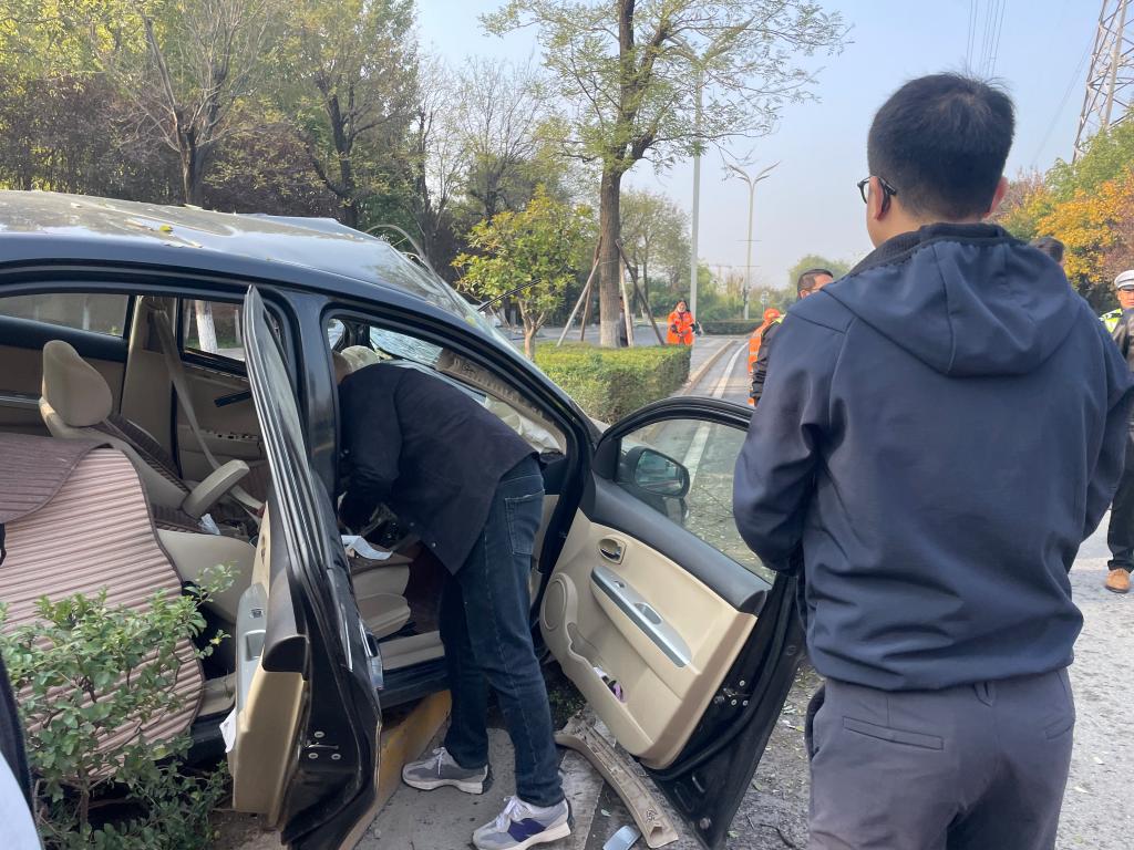 11月5日10时许,经开区渭北新城渭水一路中段发生一起交通事故,西安城投道桥集团二公司职工牛建荣、李冬、张强、周航、马麟,大秦公司职工陈伟,路用环保公司郭连银工作路上正好经过此处,发现事故后,第一时间立即停车救援。