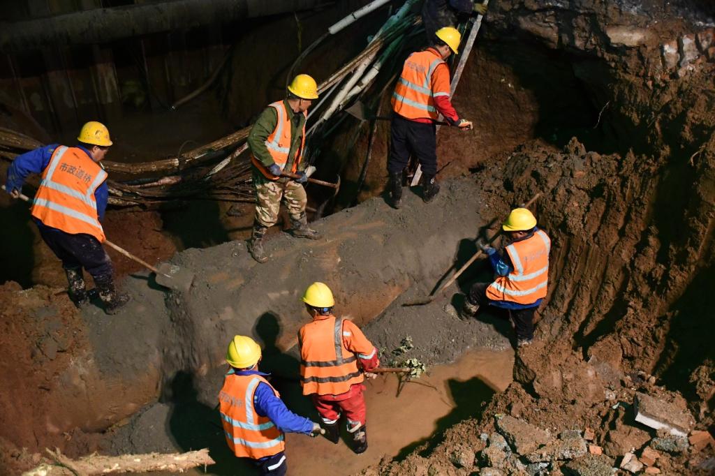 由于周边底店和居民较多,为了保障正常生产生活用水,按应急指挥部部署,救援队迅速落实,对快慢分隔带采取钢板桩支护措施,南郊公司开展d800污水管道修复(上游封堵、抽排导流),塌陷坑洞基础处理回填,并配合天然气完成防腐保护处理、慢道回填、沥青摊铺、人行道铺装;五公司、六公司清理路面淤泥、打钢板桩、排查地下管线、挖沟槽。22日5时左右,经过35小时艰苦奋战,完成西侧慢道、人行道面层铺装和标线施划工作,22日早7时,慢道放行交通。目前,正在开展钢板桩支护和管沟开挖工作,待管道安装完成后,快速恢复道路使用功能,力争12月底前完成全部任务,保障车辆正常通行。