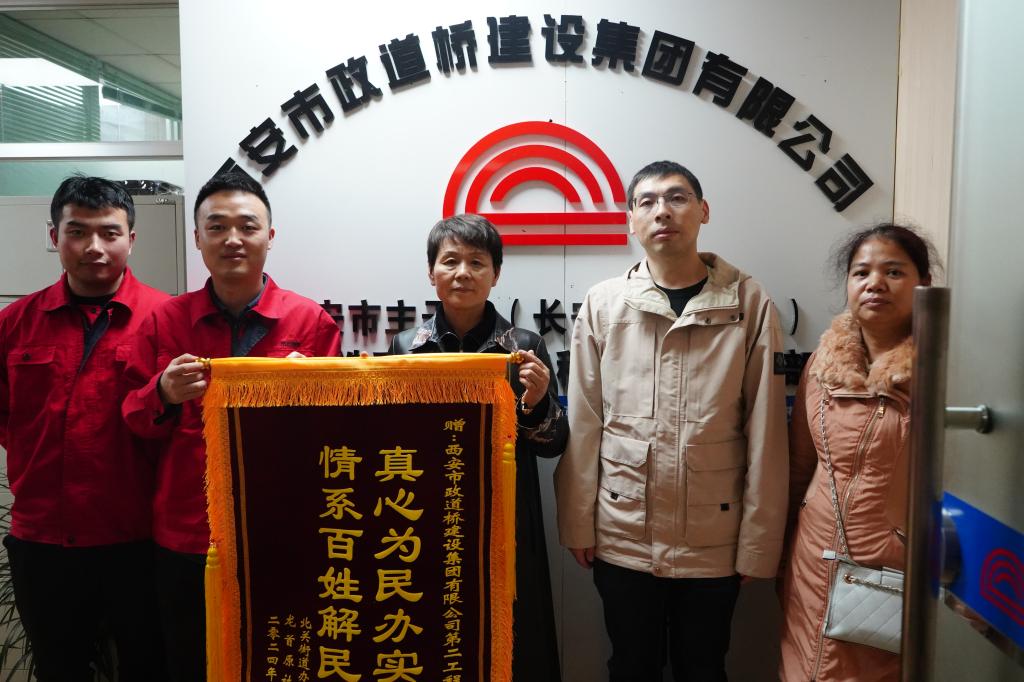 “特别感谢你们,为我们办了大实事,把居民急难愁盼的问题解决了!”日前,北关街办及龙首原社区工作人员和居民代表将一面写着“真心为民办实事情系百姓解民忧”的锦旗送到了道桥集团二公司手中,感谢他们为居民解决了大问题。