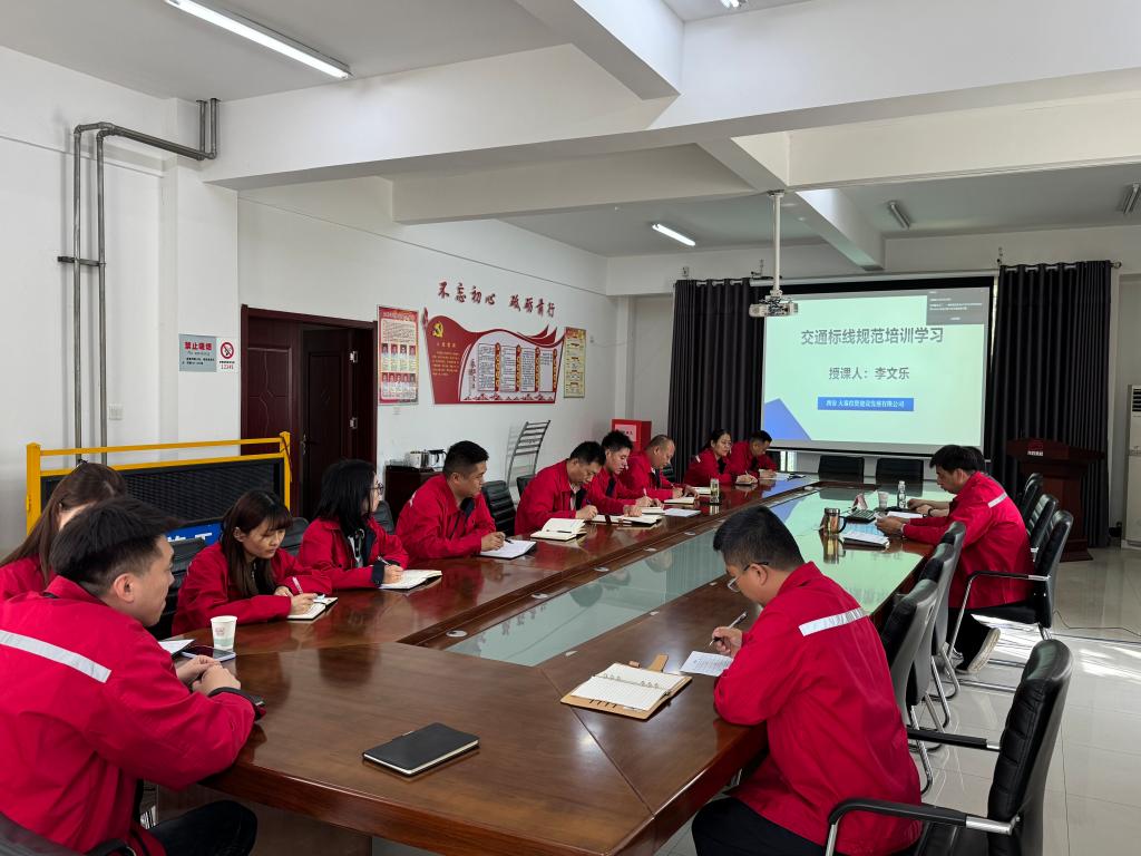 随后,公司内部培训主要结合以往施工实际、短板不足、分别从人员思想、业务能力、现场管理、图纸审核、施工准备、施工过程中安全质量控制、以及施工中存在的质量问题进行互动、讲解和剖析,真正做到查漏补缺,实现业务水平提升。理论培训结束后,公司标线作业骨干组织全体人员奔赴实操演练场,根据设计图纸进行现场模拟标线施工全流程操作及讲解,最后并对常见质量问题及解决措施进行重点说明。