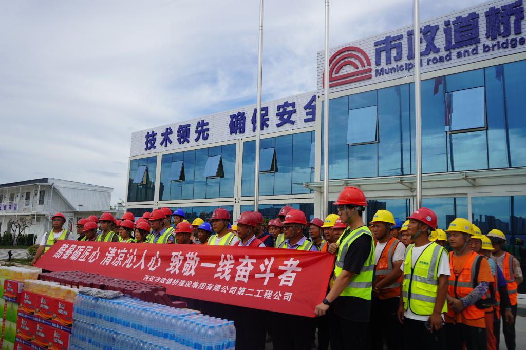 8月1日,二公司领导班子深入各重点项目施工一线开展“夏送清凉”慰问活动,为奋战在高温下的广大建设者们送去了凉茶、西瓜、绿豆等防暑物资。