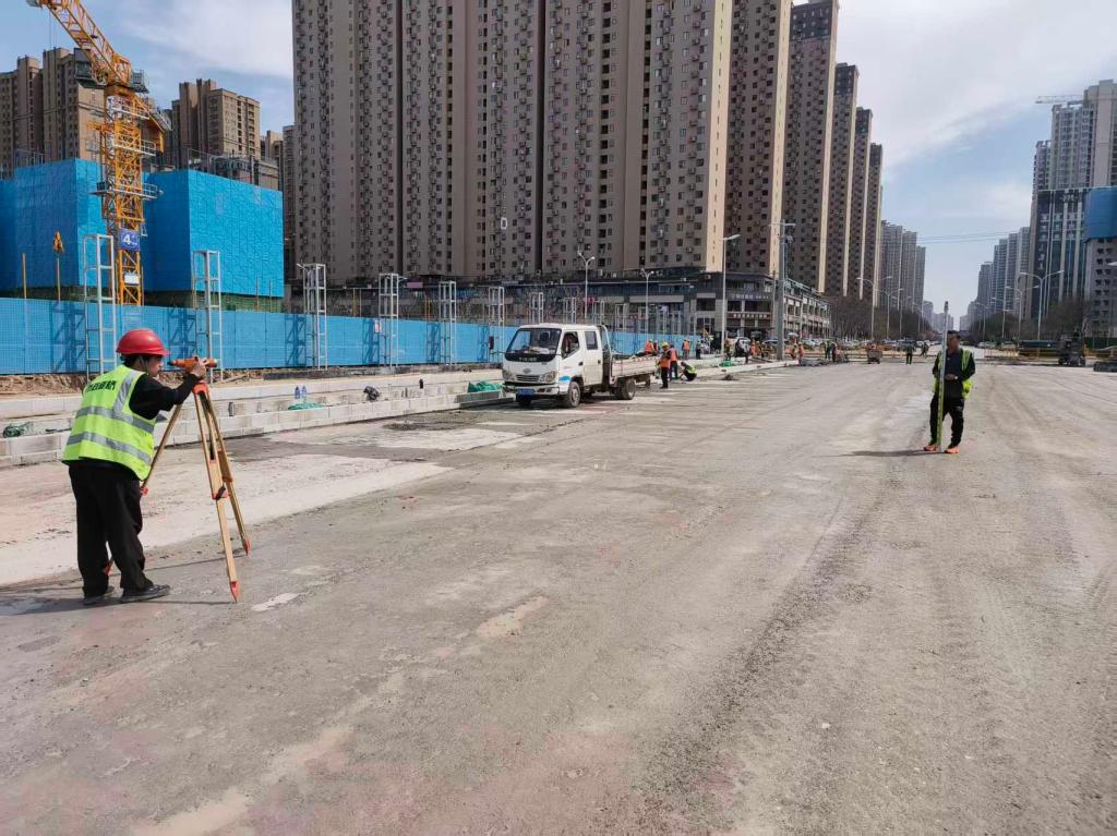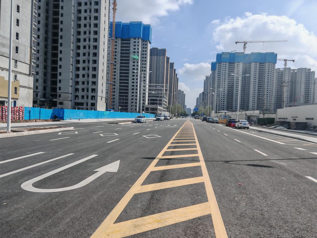 该工程于2024年7月正式开工,2025年7月完工,道路全长349.5米,规划红线宽度为32米,渠化段红线宽度为40米,建设内容主要包括道路工程、排水工程、照明工程、电力管沟、交通工程、绿化工程等工程。受地下管线分布密集、布局复杂的影响,项目施工需反复核查、精准避让,整体施工周期历经一年。