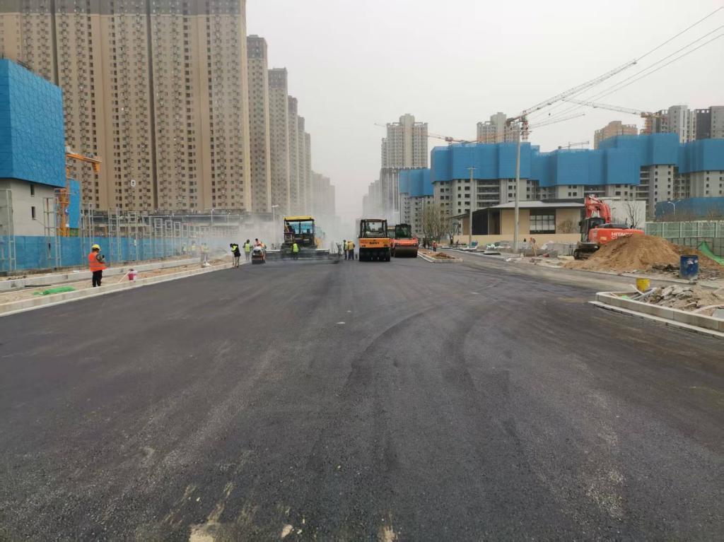 施工过程中,项目团队精心组织、精细化施工,注重细部节点,优化施工工艺。道路沥青面层施工中采用三机联铺,一次性整体成型,路面平整度好、结构密实均匀。人行道采用石材砖铺装,砖缝均匀一致,整体效果美观大方。公交站台区域按规范及设计图纸设置无障碍设施,兼顾实用性与人性化需求。路缘石线型顺直流畅,与道路整体协调统一,显著提升了项目的整体视觉品质。