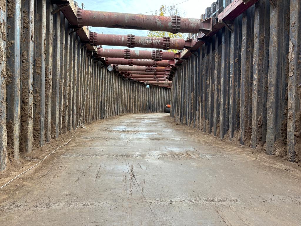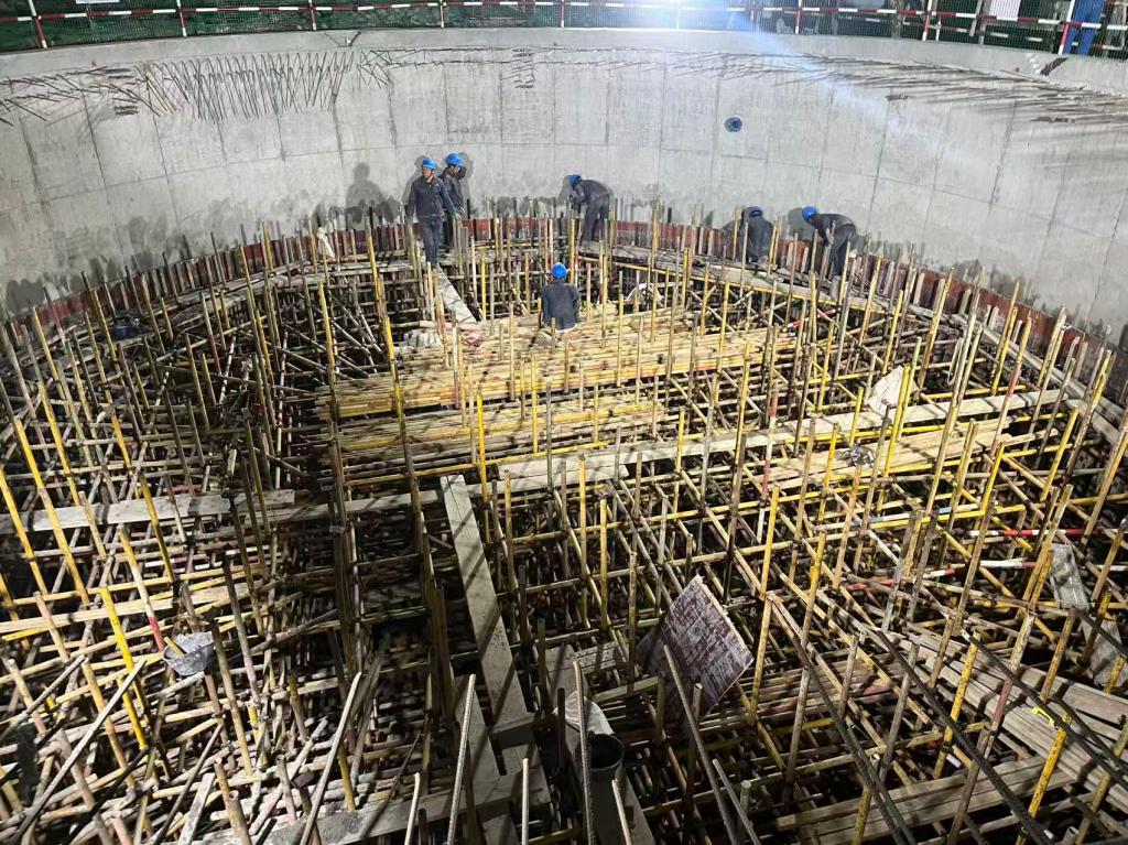 现场圆形顶管工作井已初具雏形,井内模板安装定位精确,施工精度处于毫米级的可控状态;地面作业同步开展,回填区域分层压实,均匀密实,有效保障了与原市政道路的平稳衔接。各作业面的形象进度清晰明确,管控严格,整体施工呈现出高效协同、稳步推进的良好态势。