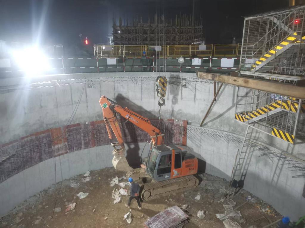 面对多作业面交叉施工的复杂状况,项目部科学统筹、协同作战,实现了“开挖-支护-验收”全流程的高效衔接。关键工序实行24小时连续作业,并辅以每日进度协调机制,动态优化施工方案,确保各项节点目标按时达成。截至目前,DJ10-11旋喷桩、DJ9-10明开槽基础、DJ11护臂修边等关键节点已全部完工。