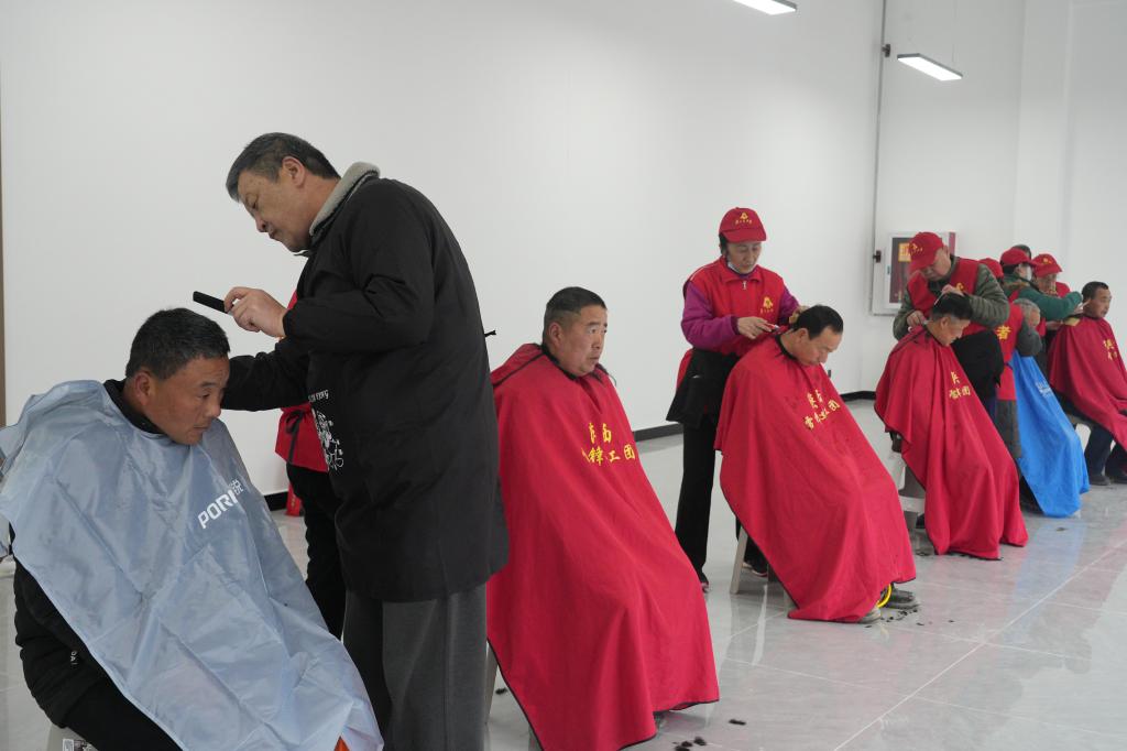 同时,道桥集团邀请支部书记和退休职工组成理发师志愿者队伍,为现场近100名务工人员及公园过往市民开展义务理发服务。根据工友的要求,快剪出最适合的清爽发型。每一位工友剪完的时候,脸上都洋溢着开心的笑容。
