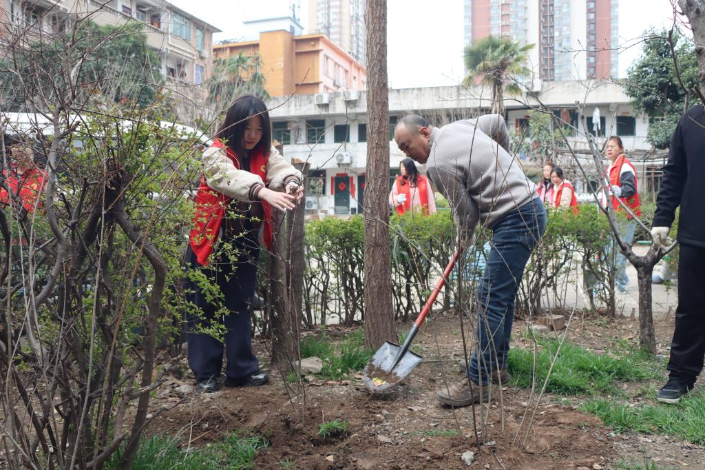 “坑要挖深些,土要压实点。”3月11日下午,东城桃园小区里热火朝天,东郊公司党支部党员化身“绿色使者”,走进东城桃园小区,与社区工作人员等结成"种绿搭档",挖坑、扶苗、填土、浇水一气呵成,与社区居民共植"同心林。
