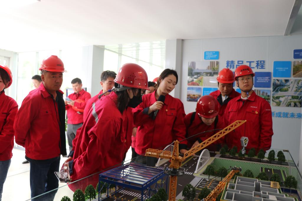 随后尚稷路桥梁项目讲解员向大家介绍了标准化建设情况,对标准化办公区、绿色施工、党建培训室、职工之家、企业文化长廊、创新产品落地应用及质量标准化样品展示等内容做了系统讲解,通过vr技术体验、观看BIM三维模型视频,更为全面的了解了桥梁施工的技术重难点。