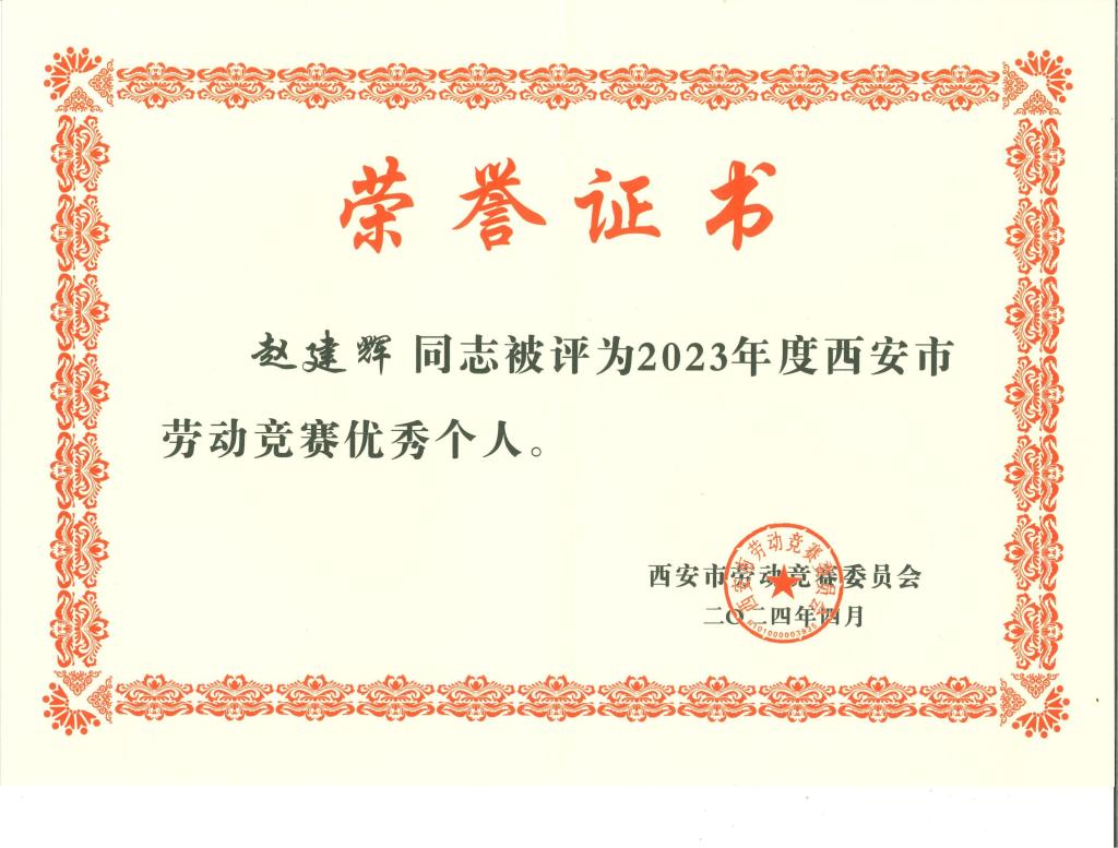 近日,西安市劳动竞赛办公室通报了2023年度西安市劳动竞赛优胜集体及个人表彰决定,道桥集团东郊公司桥梁维修项目部经理赵建辉荣获“西安市劳动竞赛优秀个人”称号。